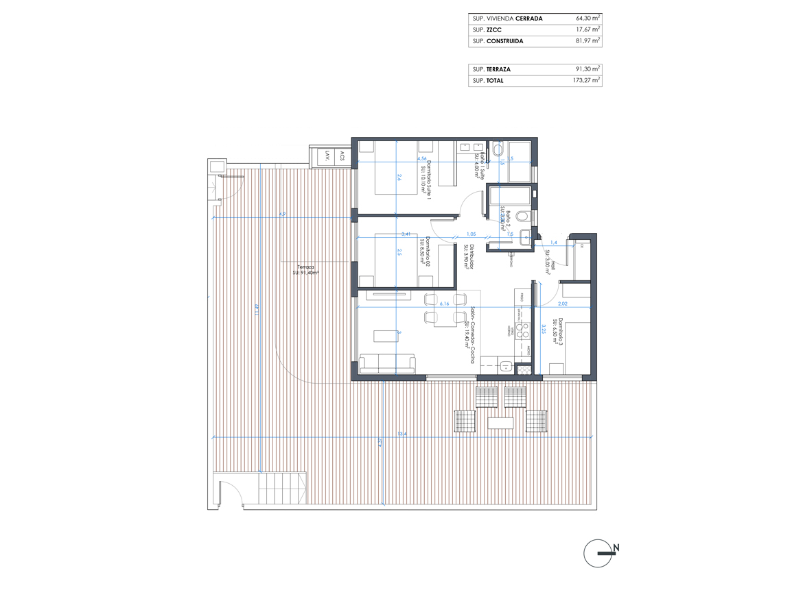 Stap binnen en ontdek de magie van dit prachtige appartement met Spaanse flair! Spaanse DroomCasa nodigt u uit om de mogelijkheden van dit schitterende appartement met drie slaapkamers, twee complete badkamers en een uitnodigend terras te omarmen. Met slechts vier of twee appartementen per verdieping ervaart u een ongeëvenaarde privacy. Laat u verrassen door de indrukwekkende ramen van vloer tot plafond in de woonkamer en slaapkamers die een gevoel van vrijheid creëren en een adembenemend uitzicht over de omgeving onthullen. Laat de open, beige keuken met een elegant licht werkblad en stijlvolle houten panelen u inspireren, compleet met hoogwaardig geïntegreerd witgoed.