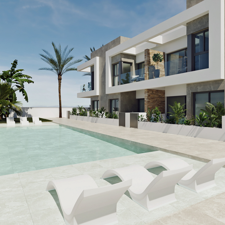 Uw appartement is voorzien van LED-verlichting en pre-installatie airconditioning. U parkeert uw auto op uw eigen terras aan de voorzijde van de woning.