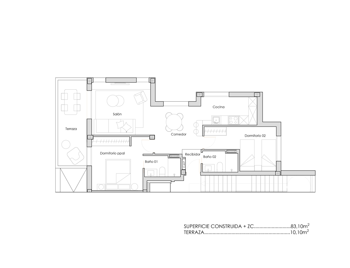 Spaanse DroomCasa nodigt u uit om dit moderne appartement met twee slaapkamers te ontdekken, compleet met twee moderne badkamers en een ruim terras. De open keuken, uitgerust met hoogwaardig witgoed apparatuur, zoals een kookplaat, afzuigkap, koelkast, oven, magnetron en vaatwasser, is een waar genot voor de culinaire liefhebber. Beide luxe badkamers zijn voorzien van een toilet, stijlvol badmeubel, spiegel en een verkwikkende inloopregendouche, met prachtige matzwarte kranen. De hoofdslaapkamer, met een luxe en-suite badkamer, biedt een oase van rust en comfort.
