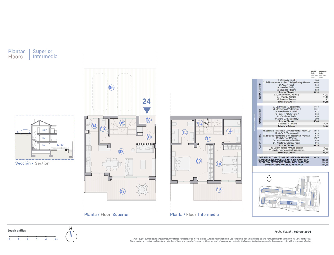Spaanse DroomCasa presenteert u dit uitzonderlijke herenhuis, een toonbeeld van moderne elegantie en functionaliteit. Verdeeld over drie verdiepingen, beschikt u over maar liefst vier slaapkamers, aangevuld met een veelzijdige tuinkamer die u geheel naar eigen wens kunt indelen. Met drie complete badkamers en een gastentoilet, is er aan ruimte en comfort geen gebrek. Geniet van het buitenleven op uw drie ruime terrassen en in uw privétuin, de perfecte setting voor ontspanning en vermaak. De tuinkamer biedt de flexibiliteit om deze ruimte te transformeren tot een extra slaapkamer, een gezellige tv-kamer, een ruime woonkamer met de optie voor een keukenblok, of een productieve kantoorruimte, zodat uw woning perfect aansluit bij uw levensstijl.
