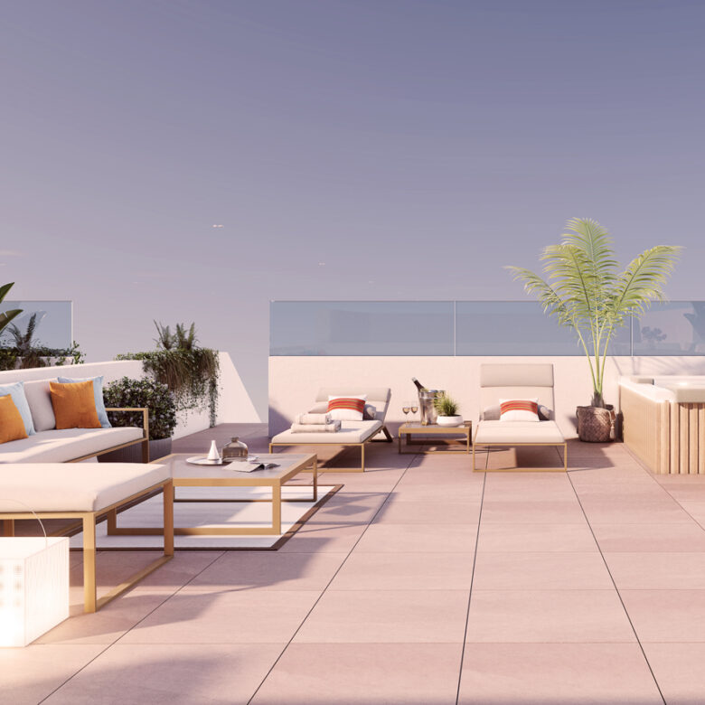 Spaanse DroomCasa presenteert u dit penthouse met drie slaapkamers en twee moderne badkamers. De open keuken is voorzien van witte keukenfronten. Beide badkamers zijn compleet en voorzien van een inloopdouche, wastafel, spiegel en toilet. Vanuit de woonkamer heeft u toegang tot het terras. Vanaf het terras neemt u de trap naar het solarium, waar u heerlijk geniet van de Spaanse zon en geniet van het uitzicht.