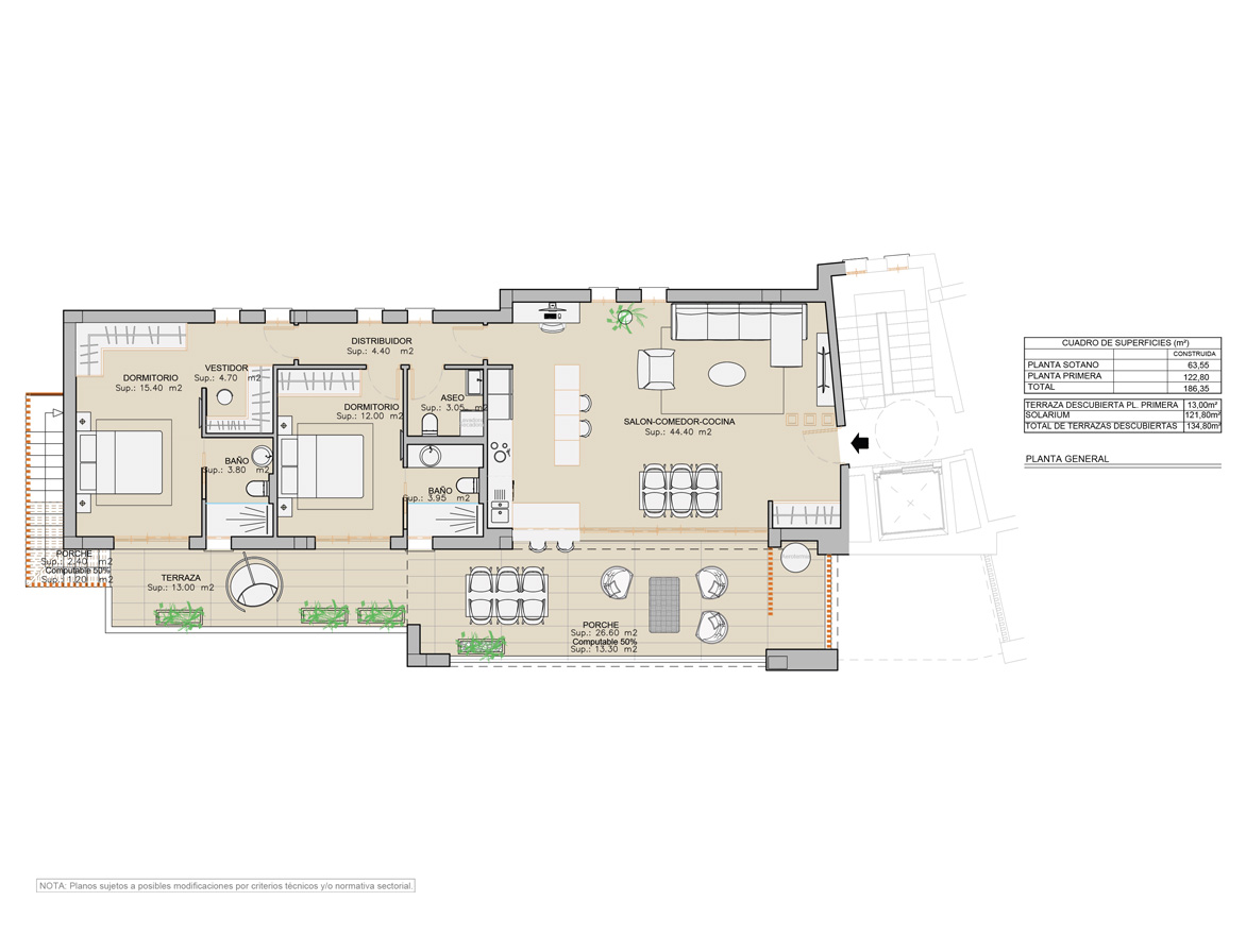 Met trots biedt Spaanse DroomCasa dit schitterende penthouse aan, uitgerust met twee ruime slaapkamers, twee luxe badkamers en een privé solarium. De woonkamer straalt een gevoel van ruimte en warmte uit, dankzij de plafondhoge ramen. De open L-vormige keuken, compleet met hoogwaardige apparatuur, vloeit naadloos over in de leefruimte. Vanaf uw terras heeft u een prachtig uitzicht op de verzorgde gemeenschappelijke tuin met zwembad. Een trap leidt u naar het ruime solarium, waar een privé jacuzzi wacht. Hier kunt u genieten van een adembenemend uitzicht over de glinsterende Middellandse Zee.