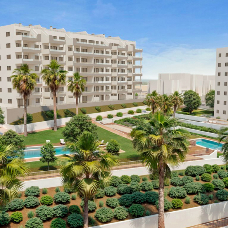 De residentie bestaat uit vijf appartementsgebouwen met in totaal 222 appartementen en is voorzien van een gemeenschappelijke tuin met drie zwembaden, gelegen op drie verschillende niveau’s. De tuin is bijna 10.000 m² groot en prachtig aangelegd met natuurlijk gras, tropische planten en palmbomen.
