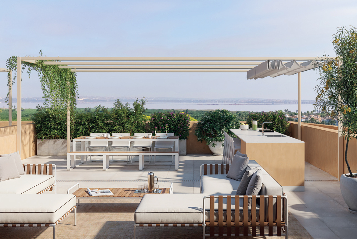 Een prachtig penthouse, verborgen in een schitterende nieuwe met een betoverende Mediterrane tuin van meer dan 2.000 m². Slechts 1 km verwijderd van de adembenemende Laguna Rosa de Torrevieja, waar u de rust en schoonheid van de natuur kunt ervaren. Laat u verwonderen door de nabijheid van alle voorzieningen en het warme zand van de Middellandse Zee. Een belofte voor een onvergetelijk verblijf vol genot en inspiratie.