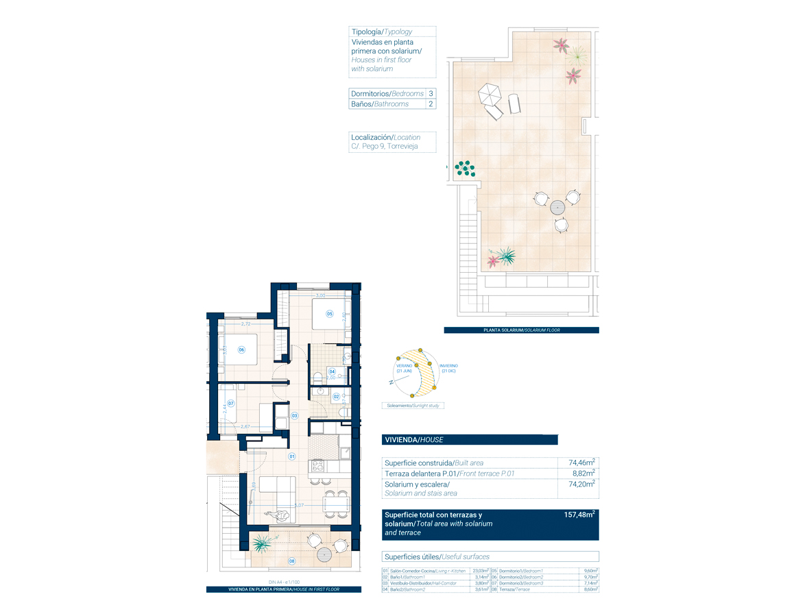 Spaanse DroomCasa presenteert u dit penthouse met drie slaapkamers en twee luxe badkamers. U heeft de mogelijkheid om een derde slaapkamer te realiseren. De woning heeft een modern design en de afwerking is van topkwaliteit. Het penthouse beschikt over een terras aan de zijde van de woonkamer en een zonnig solarium met spectaculair uitzicht richting de Middellandse zee. Uw woonkamer is voorzien van een prachtige in u-vorm uitgevoerde open keuken met een eetbar. De keuken is voorzien van hoogwaardig geïntegreerd witgoed. De slaapkamers zijn ruim, de hoofdslaapkamer beschikt over een luxe badkamer en-suite. Beide badkamers zijn compleet en luxueus uitgevoerd met badmeubel, spiegel met verlichting, vloerverwarming, inloopdouche en zwevend toilet.