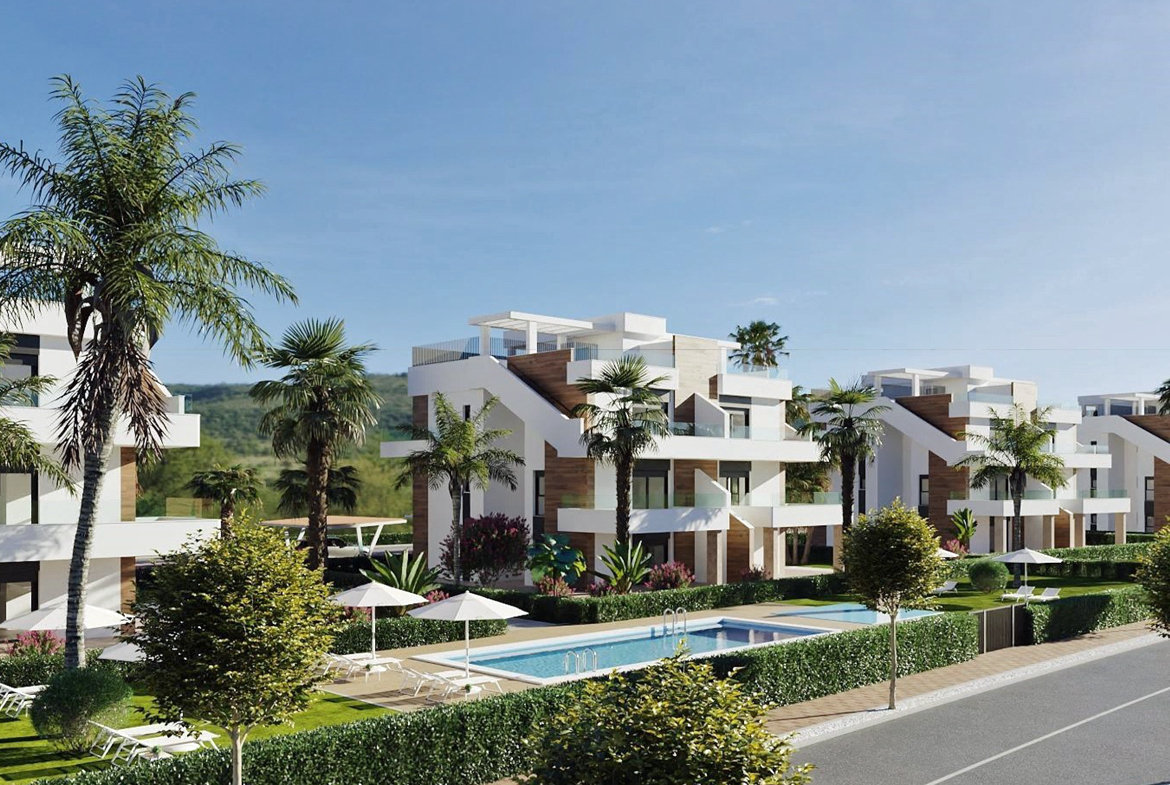 Luxe penthouse op golfresort Hacienda del Álamo. Uw penthouse beschikt over een riant solarium en ligt dicht bij de prachtige golfbaan, omgeven door groen en bergen.