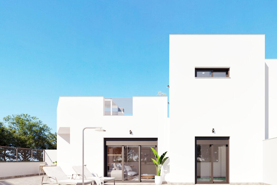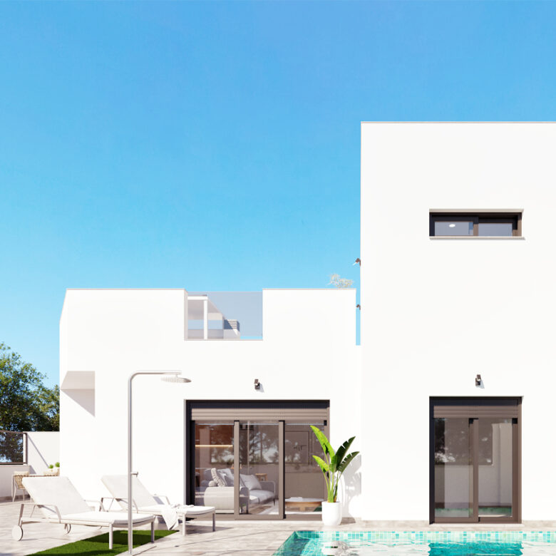 Spaanse DroomCasa presenteert u deze gelijkvloerse villa met twee slaapkamers en twee complete badkamers, privé solarium en zwembad. Uw woonkamer is licht en de moderne open keuken is voorzien van witgoed en een spoeleiland. Aan de onderkant van de keukenkasten is LED-verlichting aangebracht. Vanuit de woonkamer kijkt u uit over de ruime tuin, waar uw eigen zwembad met verlichting en buitendouche is gesitueerd. Hier geniet u de hele dag van de heerlijke Spaanse zon.