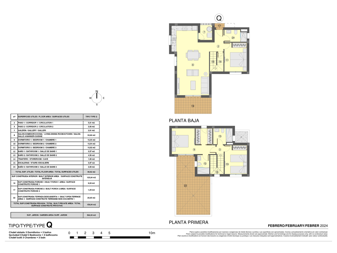 Spaanse DroomCasa presenteert u deze duplex schakelvilla met drie slaapkamers en twee badkamers. De villa is stijlvol uitgevoerd en heeft een moderne uitstraling. De woonkamer is licht en kijkt uit op uw ruime tuin. De open L-vormige keuken is voorzien van veel bergruimte plus een bijkeuken met ruimte voor uw wasmachine en droger. Op de begane grond bevinden zich een slaapkamer en een luxe badkamer. De tweede en derde slaapkamer bevinden zich op de eerste verdieping. De hoofdslaapkamer beschikt over een luxe badkamer en-suite en inloopkast. Deze slaapkamer grenst aan een privé terras met prachtig uitzicht over de omgeving. De badkamers zijn compleet met inloopdouche, spiegel met LED-verlichting, zwevend badmeubel en toilet.