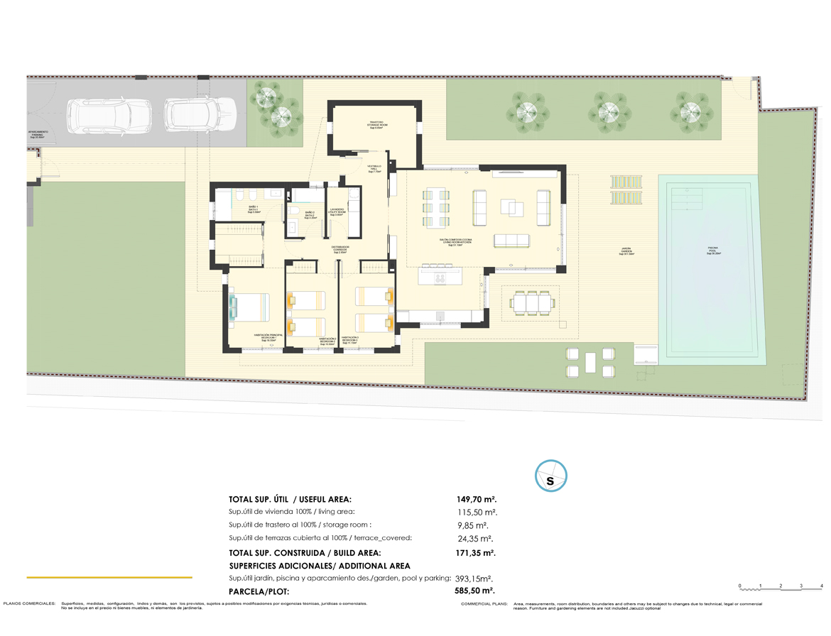 Spaanse DroomCasa presenteert u deze mooie vrijstaande en gelijkvloerse villa met diverse terrassen, privé zwembad, drie slaapkamers en twee complete badkamers. Geniet van de enorme ruimte en luxe van uw villa en het resort. De open keuken met spoeleiland is voorzien van witgoed en loopt naadloos over in de lichte woonkamer. Vanuit de woonkamer kijkt u uit over de tuin waar uw eigen zwembad ligt.