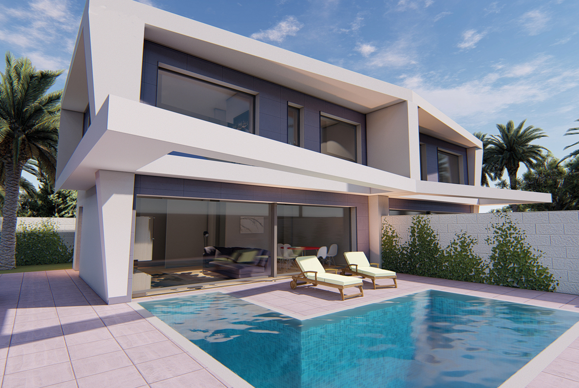 Spaanse DroomCasa presenteert met trots deze schitterende schakelvilla in stralend wit en modern, hoekig design. U heeft de mogelijkheid om te kiezen uit twee, drie of vier slaapkamers, drie complete badkamers en een prachtig privé zwembad waar u kunt ontspannen. De woning biedt flexibele ruimtes die u kunt inrichten naar uw eigen wensen en stijl. Laat uw creativiteit de vrije loop met diverse opties om uw schakelvilla helemaal naar uw eigen smaak te maken. Op de begane grond vindt u een gezellige woonkamer, een praktische keuken, een slaapkamer en een badkamer. U kunt ervoor kiezen om de slaapkamer te vervangen door een grotere keuken voor nog meer ruimte. Geniet vanuit de woonkamer van toegang tot een terras met uitzicht op uw riante zwembad, compleet met een duurzame solar buitendouche.