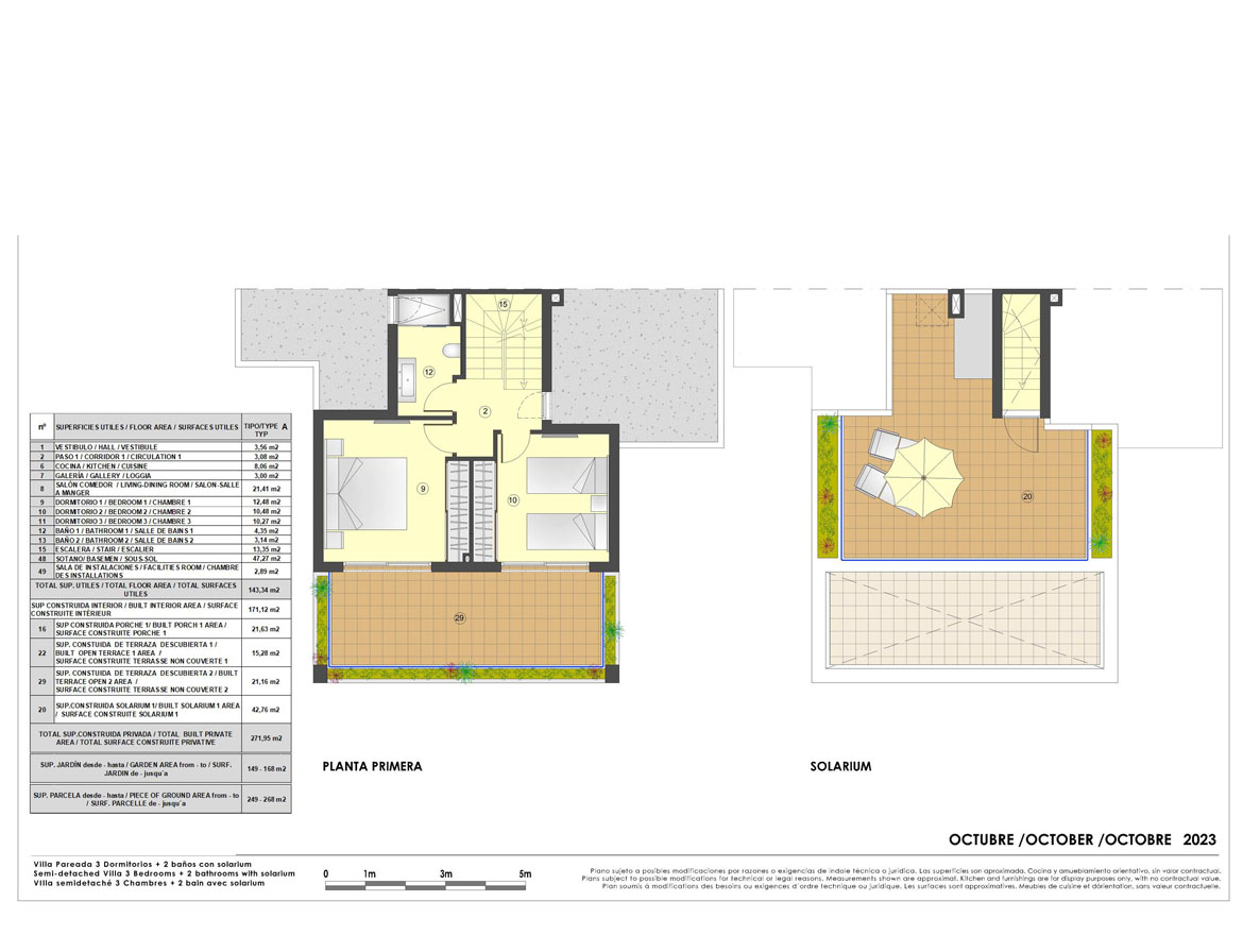 Spaanse DroomCasa presenteert u deze moderne schakelvilla met drie slaapkamers, twee complete badkamers, zonnig solarium en ruim souterrain. Er is zelf ruimte voor een privé zwembad in uw tuin. De villa is heeft u moderne en warme uitstraling door de combinatie van witte structuur met natuursteen.
