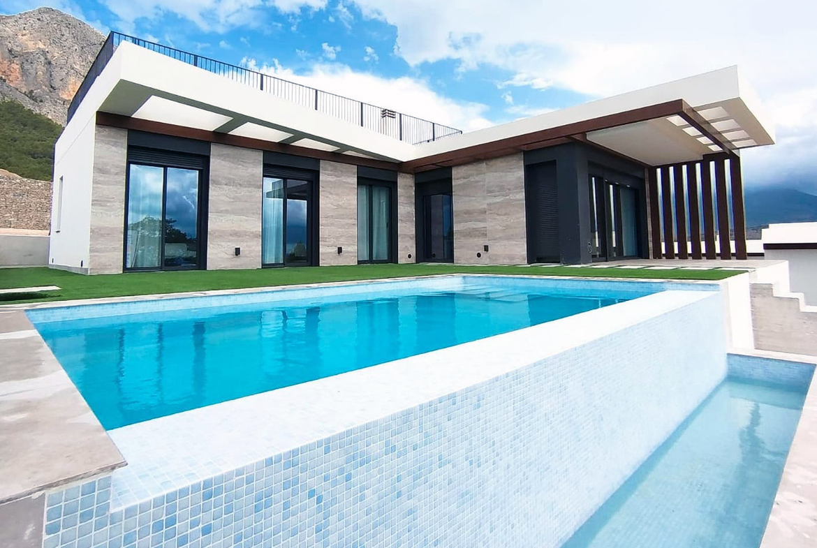 Vrijstaande gelijkvloerse villa in Polop de la Marina met uitzicht op de Middellandse Zee, de baai van Altea en de bergen van Puig Campana. Geniet van de rust op deze prachtige plek omringd door bergen en met weids uitzicht over de omgeving.