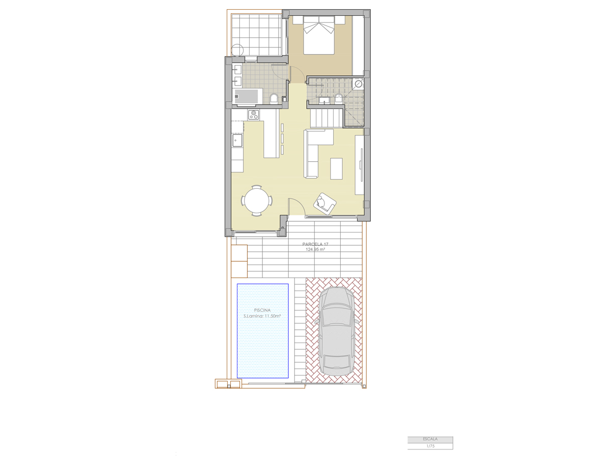 Spaanse DroomCasa presenteert u deze schakelvilla met drie slaapkamers en twee luxe badkamers. Het strakke design van wit gestucte gevels gecombineerd met veel glas geven de villa een strakke en tijdloze uitstraling. De woonkamer is voorzien van een moderne U-vormige keuken. De witte keuken beschikt over witgoed: koel-vriescombinatie, afzuigkap, kookplaat, oven en vaatwasser en is gecombineerd met houten panelen. Op de begane grond bevindt zich tevens een extra toiletruimte met plaats voor uw wasmachine en droger. Daarnaast is er een slaapkamer met luxe badkamer en-suite aanwezig. Vanuit de woonkamer heeft u prachtig uitzicht op uw tuin met optionele zwembad.