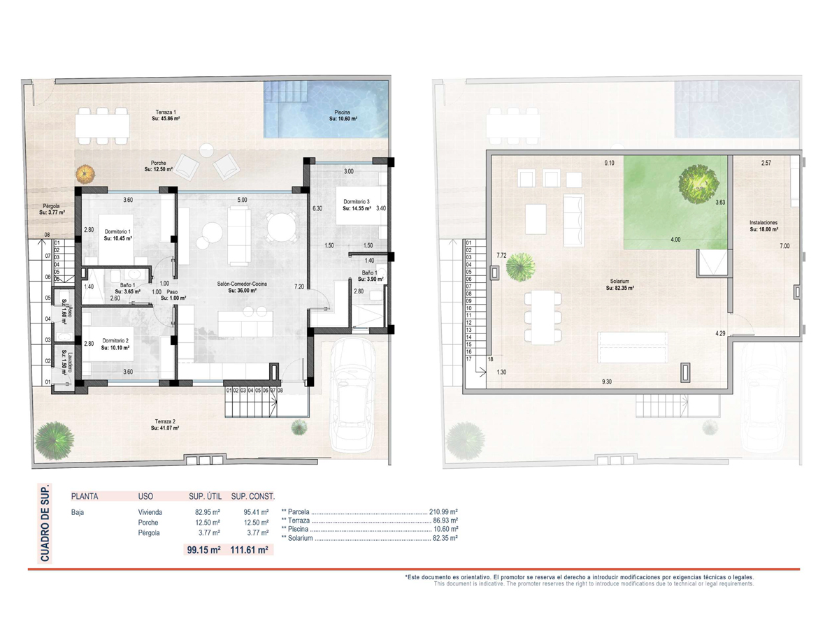 Spaanse DroomCasa presenteert u deze moderne en elegante gelijkvloerse schakelvilla met drie slaapkamers, twee complete badkamers, privé solarium en zwembad. In uw zeer ruime tuin geniet u de hele dag heerlijk van de Spaanse zon.