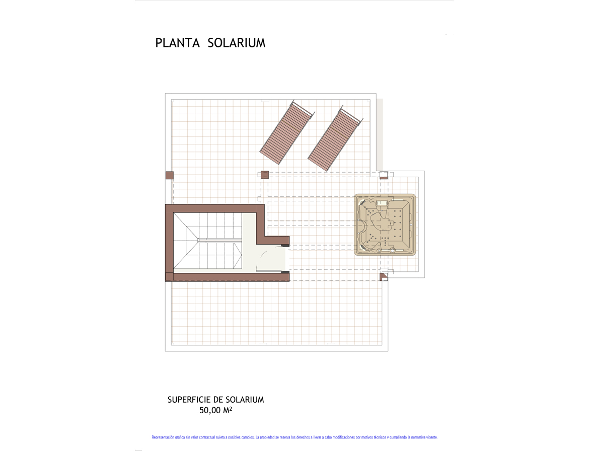 Via een trap vanaf de eerste verdieping bereikt u het indrukwekkende solarium op het dak. Hier geniet u van een adembenemend panoramisch uitzicht over de omgeving en richting de schitterende Middellandse Zee. Het solarium is slim voorzien van een buitendouche en beschikt over pre-installaties voor een afsluitbare buitenkeuken, waterpunten en zelfs een jacuzzi, waardoor dit de ultieme plek is voor ontspanning en entertainment onder de Spaanse zon.
